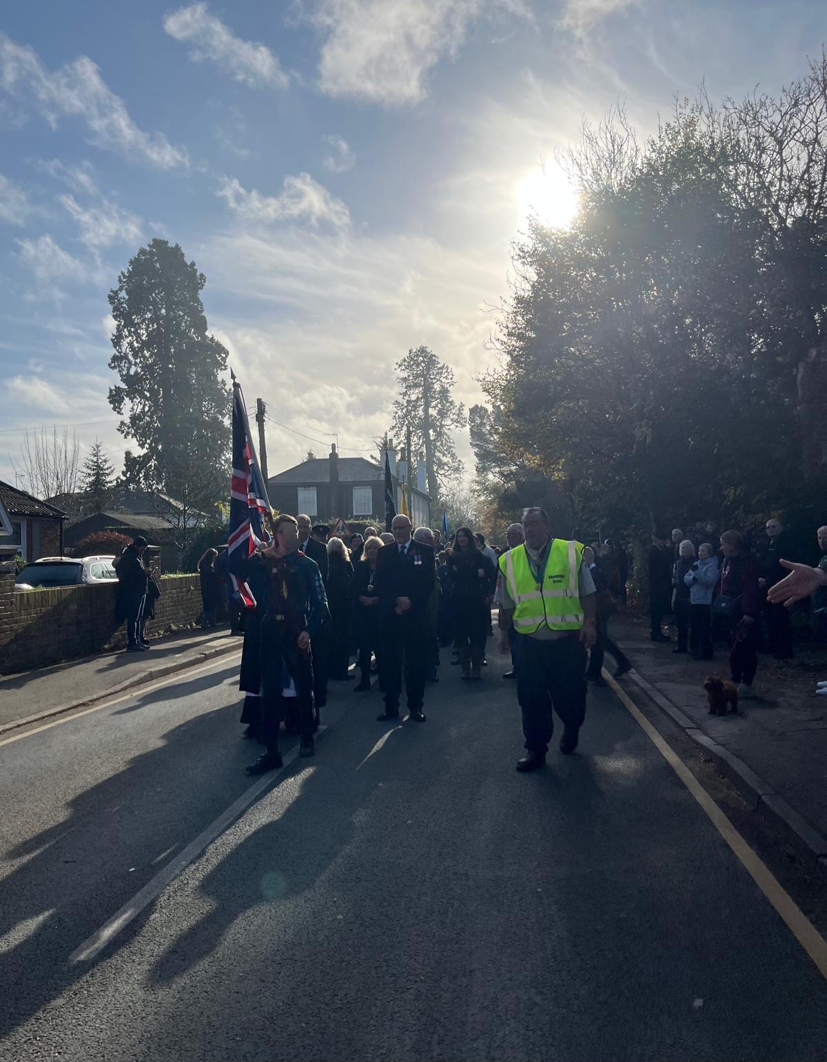 As always, it was a truly moving occasion as the parade, led by 1st Edenbridge Scout Group, marched from the town centre to the War Memorial at the old hospital site. There, we paused for prayers, The Last Post, a two-minute silence, wreath-laying, and the National Anthem.